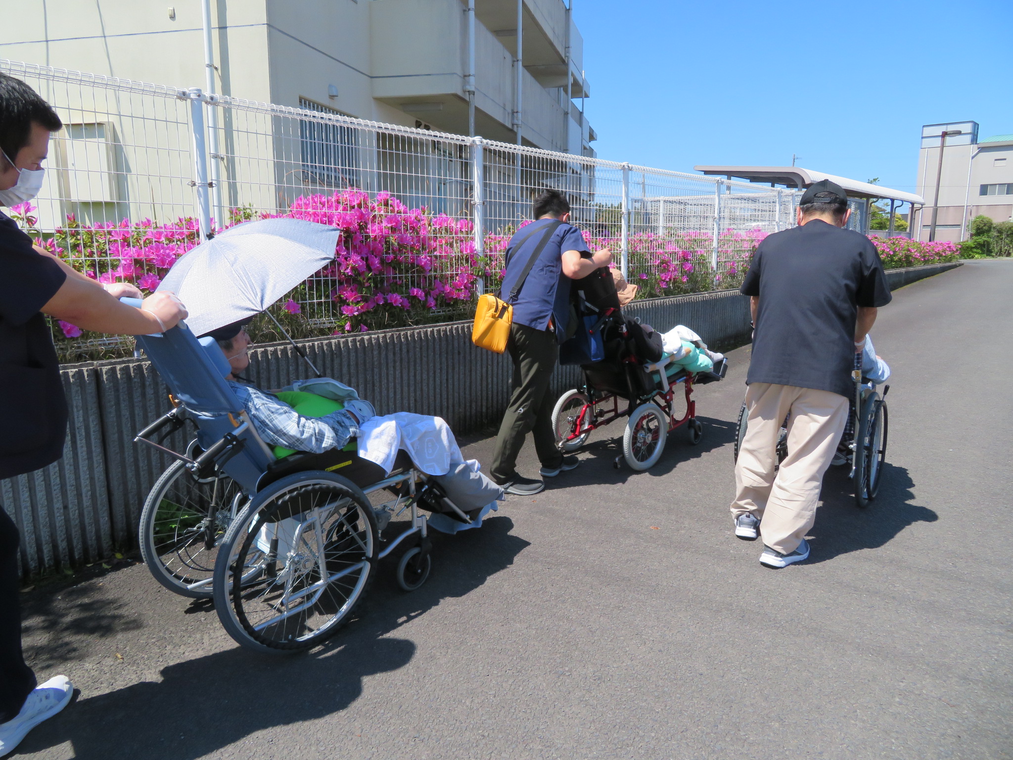 さて、この素晴らしい好天に恵まれ、認知症治療病棟では患者様と一緒に外へお散歩に出かけました。 ご自身で歩行することが難しい方も、スタッフがしっかりとサポートさせていただき、皆様で一緒に外の空気を楽しんでいただくことができました。