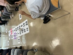 午前中は個人戦として、スリッパ飛ばしや的あてゲームなど、笑い声が絶えない競技が続きました。